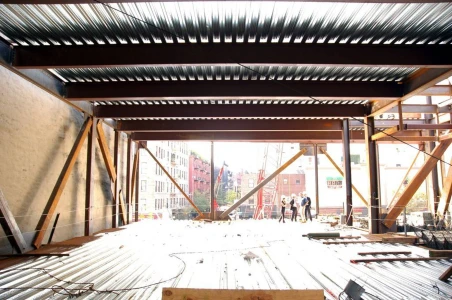 The design for the New Museum of Contemporary Art consists of a series of rectangular volumes that shift laterally as they rise. As a result, the only continuous vertical structure is in the central elevator core. The exterior walls are built of a series of shifting trusses that wrap around the east and west facades creating a number of floating corners. These trusses provide all of the setback transfers and the majority of the lateral resisting system of the building. The wall structure is kept to 8in in thickness to allow for minimal overall wall thickness.
